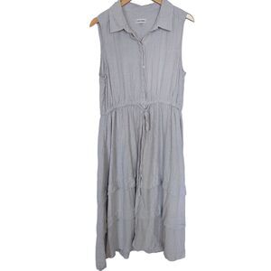 Calvin Klein Maxi Dress Sz 14 Blue Striped Linen Tiered Sleeveless A-Line