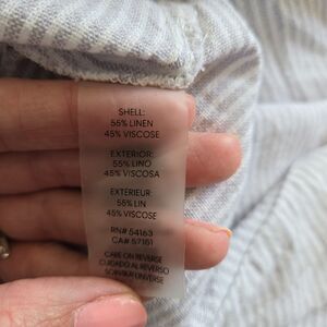 Calvin Klein Maxi Dress Sz 14 Blue Striped Linen Blend Sleeveless Drawstring.