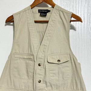 Calvin Klein Men Beige Denim Utility Tactical Vest Fishing Safari Size Large