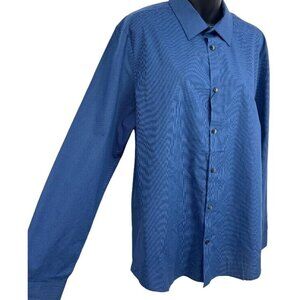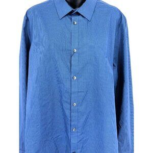 Calvin Klein Men Button Down Shirt Large Blue Check Long Sleeve Non Iron NWT New