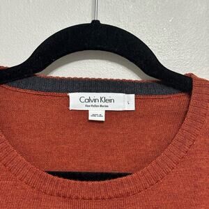 Calvin Klein Men’s 100% Merino Wool Crewneck Sweater in Rust Orange - Size L