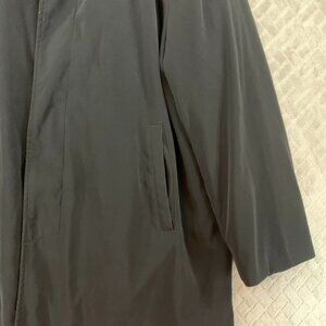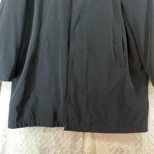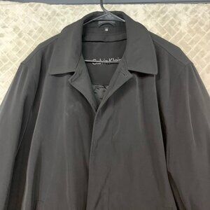 Calvin Klein Mens 42R Coat Black Office Conservative Mid Length Wool Blend Lined. Missing the first button. Removable lining. No stains or holes.