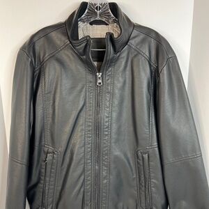 Calvin Klein Men's Black Faux Leather Bomber Jacket Size M