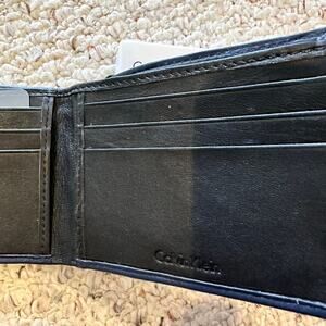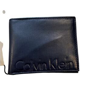 Calvin Klein Mens Black Leather Bi-Fold Wallet Cards Is Casual Business Work New