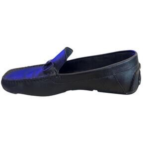 Keywords: Calvin Klein, men's loafers, black leather, slip-on, casual shoes, size 11.5, EU 45, durable rubber sole, elegant trim, round toe, pre-owned, China, men's footwear, leather loafers, slip-on loafers.