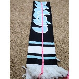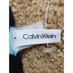 Calvin Klein Men’s Blue Black White Logo Spell Out Fringe Thick Scarf 9" X 74"