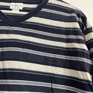 Calvin Klein • Men’s Blue Cream Striped Long Sleeve Top