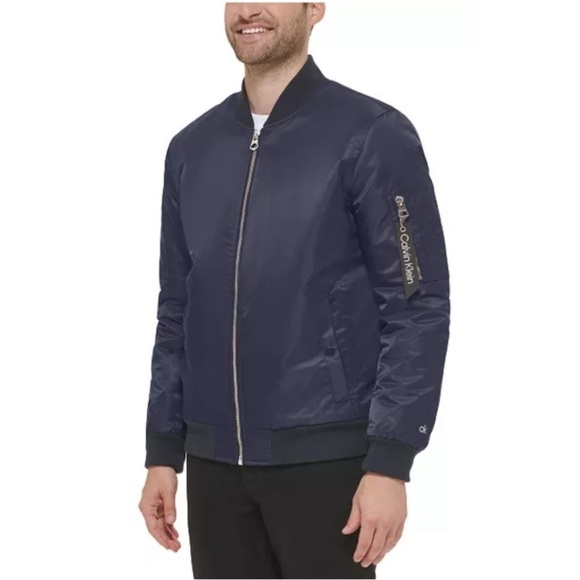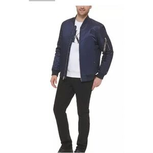 Calvin Klein Men’s Bomber Jacket Navy Blue Size Small Quilted Lining Full Zip
