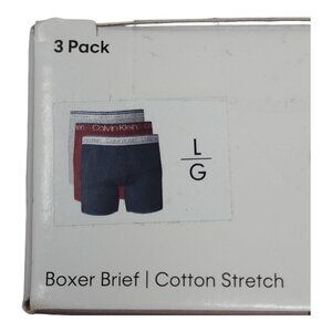 Calvin Klein Mens Boxer Brief 3-Pk L Cotton Stretch Underwear Burgundy Navy Gray