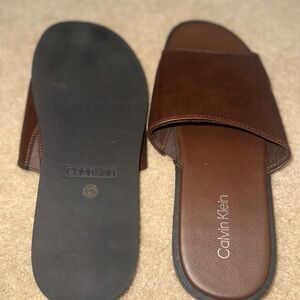 Calvin Klein Men’s Brown Leather Slide Sandals - Size 9 - Used