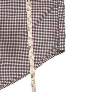 Classic and polished Calvin Klein men’s slim fit button-down shirt featuring a burgundy gingham checkered pattern. Non-iron performance fabric for easy wear and minimal maintenance. Size 15.5 with 32/33 sleeve length. Ideal for office, business casual, events, and everyday elevated style.