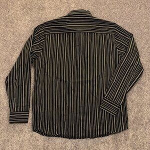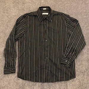 Calvin Klein Men's Button Up Shirt Size L Black Gray Striped Long Sleeves GUC