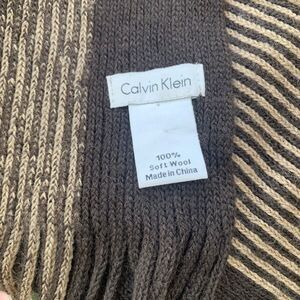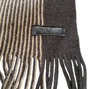 Calvin Klein Mens Chocolate Brown Striped Fringe Soft Wool Scarf 65x10