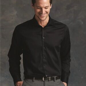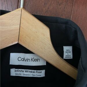 Calvin Klein Men's Cotton Stretch Dress Shirt Black wrinkle free slim fit Large