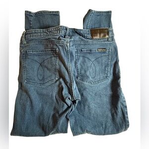 Sleek dark blue skinny jeans. Crafted by Calvin Klein. Ideal for versatile wear.