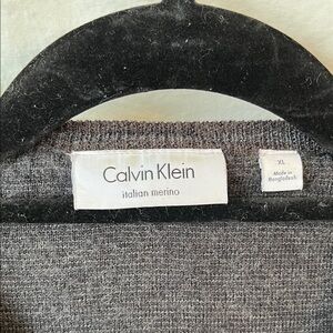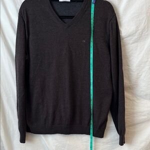 Italian merino wool dark brown V-neck sweater by Calvin Klein. Excellent used condition. Size XL, see photos for measurements.