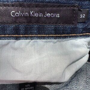 Calvin Klein Mens Dark Wash Relaxed Fit All Cotton Straight Leg Denim Jeans 32x3