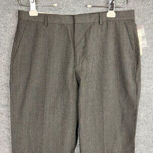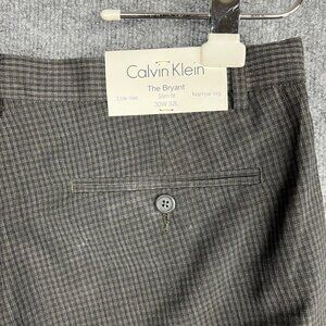 Calvin Klein Men's Dress Pant Gray plaid Size 33x32 Slim Fit Wool Charcoal