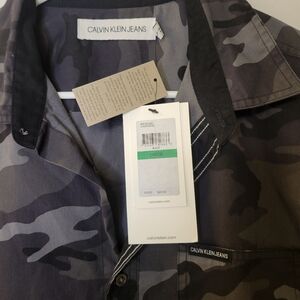 Elevate your style with this Calvin Klein men's shirt featuring a sleek gray camouflage design. Perfect for casual outings or a night out