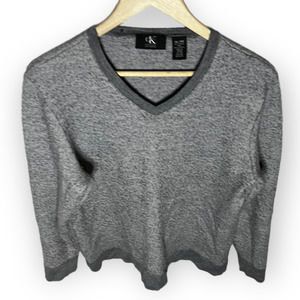 Calvin Klein Men's Gray Italian Yarn V-Neck Fuzzy Texture Pullover Sweater Sz M
