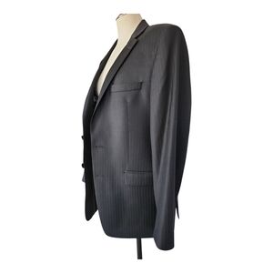 calvin klein blazer, 42R suit jacket, men’s gray stripe blazer, sport coat, dress jacket, formal menswear, modern business blazer, wedding guest outfit, tailored fit