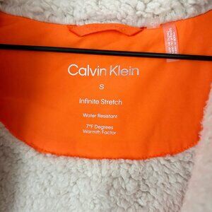 The signature Calvin Klein logo is stitched onto the sleeve and zipper detailing; and the addition of welt pockets give this down jacket added flare and function