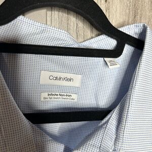 Calvin Klein Mens Infinite Non Iron Shirt Button Up Blue Size 20 36/37 NEW