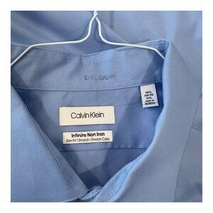 Calvin Klein Mens Infinite Non Iron Slim Fit Stretch Dress Shirt Size 2XL Blue
