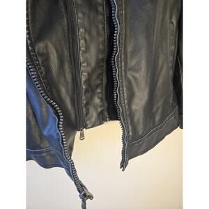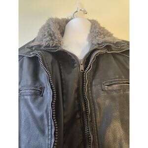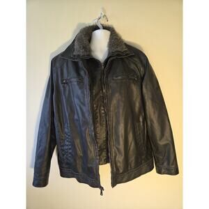 Calvin Klein Mens L Jacket Vegan Leather Black Moto Distessed Style Dbl Zip