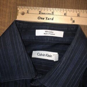 Calvin Klein Mens Large Button Up Shirt Blue Stripe Long Sleeve Dress Shirt