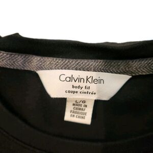 Calvin Klein Men's Large Long Sleeve Shirt Black Gray Striped Crewneck Athletic