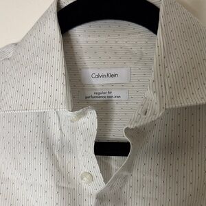 Regular fit Calvin Klein in Regular Fit performance non-iron. Clean and free of stain or tears. Neck 14 1/2 32/33 measurement.