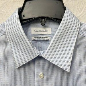 Calvin Klein Men's Long Sleeve Formal Shirt Blue Strech Collar Non-Iro Medium