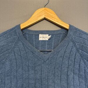 Calvin Klein Men’s Long Sleeve Blue Ribbed Knit Size Small V-Neck
