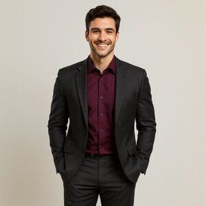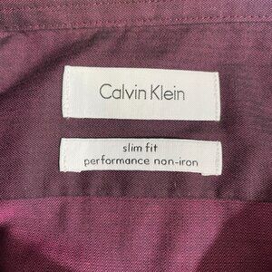 Calvin Klein Mens Maroon Slim Fit Non Iron Dress Shirt Modern Workwear Essential