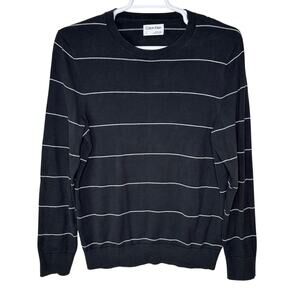 Calvin Klein Men's Medium Sweater Black White Striped Crewneck Knit GUC