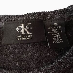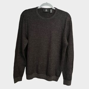 Calvin Klein Men's Merino Wool Blend Black Gray Crewneck Sweater Size Large