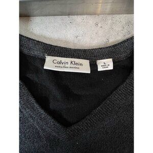 Calvin Klein Mens Merino Wool V Neck Sweater Gray Heather L