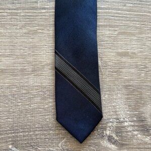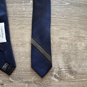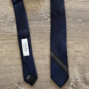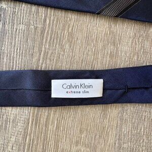 Calvin Klein Men’s Navy Extreme Slim Silk Tie with Subtle Stripe Accent