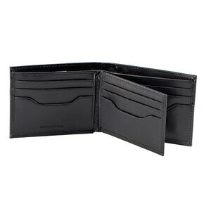 Two main pockets; two ID windows; nine card slots; currency pocket