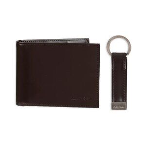 Calvin Klein Men's RFID Blocking Brown Leather Bifold Wallet with Key Fob