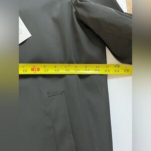Black rain jacket new. See dimensions. One of the tags is detached but in the pocket