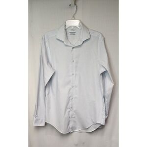 Calvin Klein Men's Long Sleeve Shirt Cotton White/Blue Slim Fit 16/34 Non Iron Performance.