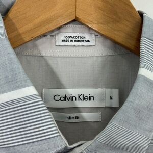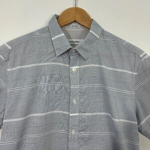 Calvin Klein Men’s Size Medium Slim Fit Gray Striped Cotton Shirt