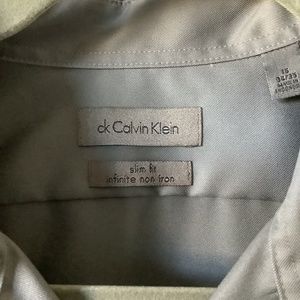 Calvin Klein Mens Slim Fit Infinite Non Iron Gray Shirt Size 16 34/35