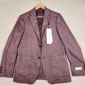 Calvin Klein Mens Slim Fit Sport Coat Blazer Red Solid Stretch – 38R (NWT)