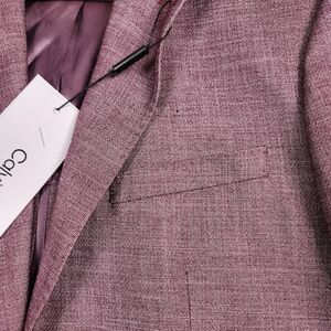 Make a statement with this Calvin Klein Slim Fit blazer in a refined raspberry hue. Expertly tailored for a modern silhouette, this jacket features a two-button closure, notched lapels, and front patch pockets for a polished yet contemporary look. The lightweight texture and smooth inner lining ensure comfort and versatility — perfect for weddings, events, or elevating everyday style.