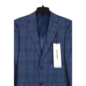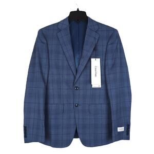 Calvin Klein Men's Slim-Fit Stretch Wool 2-Piece Suit Blue Plaid 36S 30x30 NWT