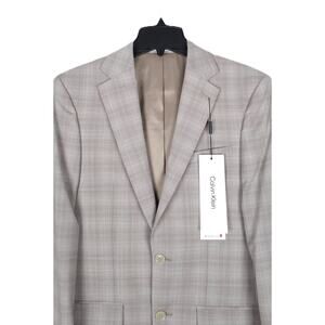 Calvin Klein Men's Slim-Fit Stretch Wool Suit Jacket Light Tan Plaid 36R NWT