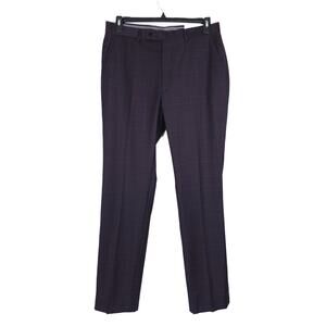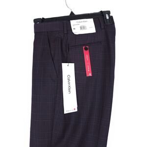 Calvin Klein Men's Slim-Fit Stretch Wool Suit Pant Navy Burgundy Plaid 34x30 NWT